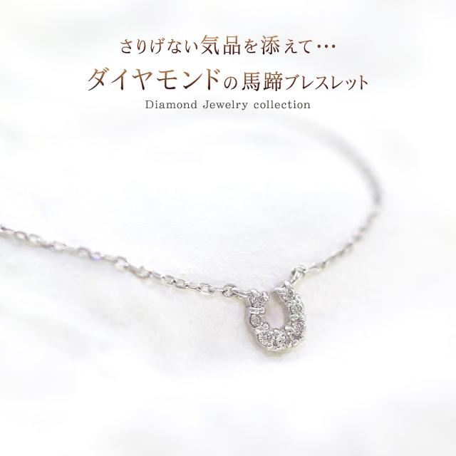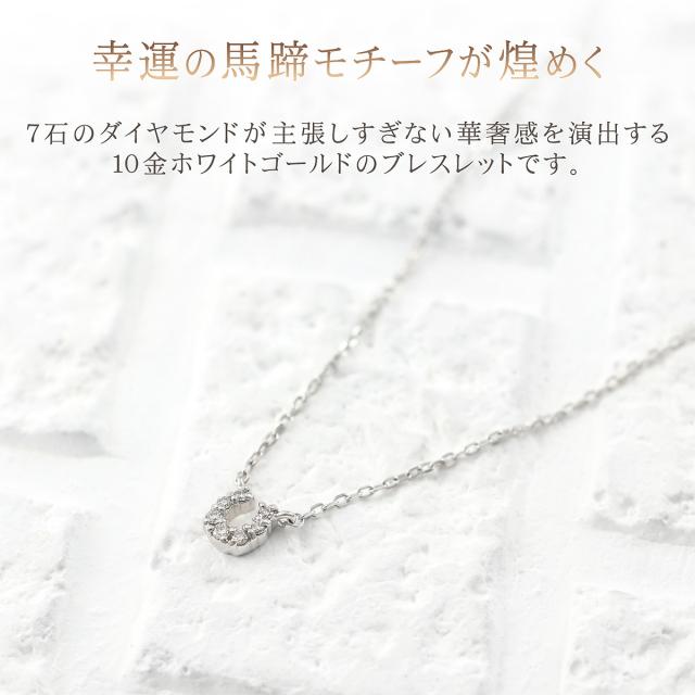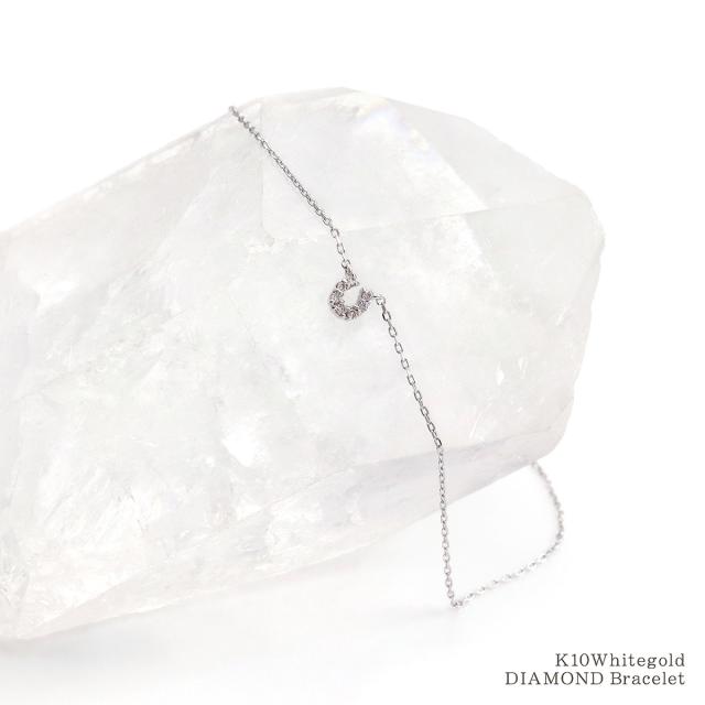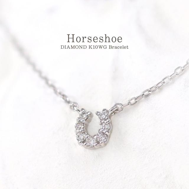 馬蹄ブレスレット ホワイトゴールド レディース ダイヤモンド ジュエリー 10金 シンプル 小ぶり おしゃれ プレゼント 記念日 誕生日 贈り物 お祝い ギフト 10K K10 ホースシュー 馬蹄 モチーフ 4月 誕生石 本物 宝石 小さめ 小さい プチ 女性 彼女 嫁 ホワイトデー お返し