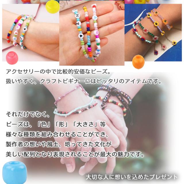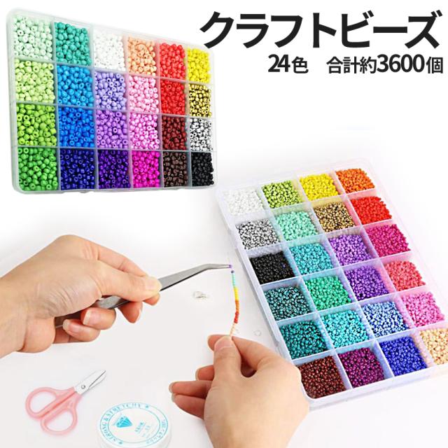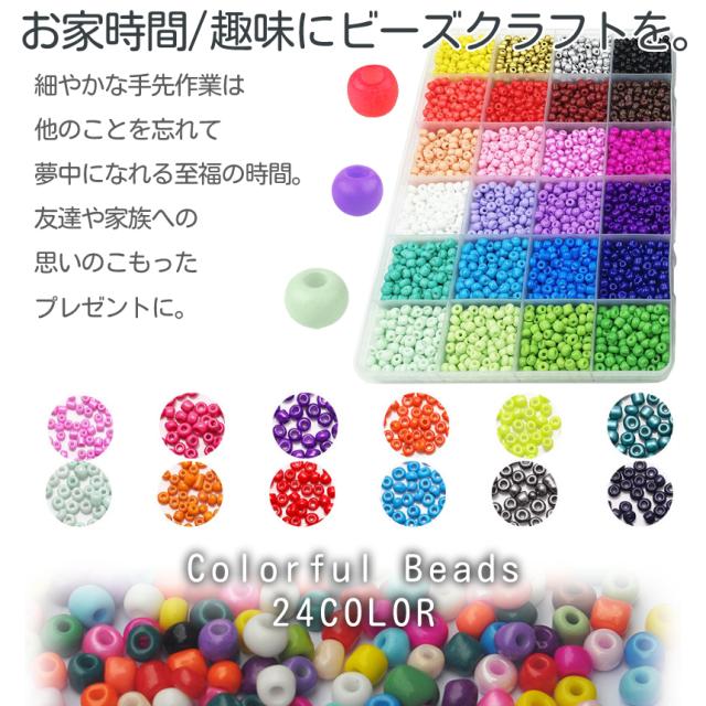 【商品説明】\お家時間に今人気のビーズクラフト♪/可愛いカラー24色がケースに入ったクラフトセットです♪手のひらサイズのケースですので持ち運び便利で保管も簡単!ビーズの魅力は安価なだけでなく、様々な形や大きさ、色を組み合わせ、製作者ならではのデザインに仕上がることです。その土地の風土や文化、製作者の想いが表現され、世界に1つだけのデザイン性が簡単に創作可能。COLORは24色、各色約150-160個入りです。※グラム換算ですので個数は前後します==========【商品仕様】パッケージ内容:極小ビーズ24色約3600個、専用ケースサイズ(約):全長4mm穴径1.2mm ケース20cm×13cm材質:ガラス※食べられません※誤飲の危険があるため、お子様には与えないでください。※小さなお子様の手に届かない場所で使用/保管してください。※衝撃に弱い商品ですので取扱いにご注意ください※モニターにより色合いが若干前後する場合がございます。※輸入品ですので多少の臭いやスレ傷、汚れはご了承ください。※サイズは実寸ですが若干前後する場合がございます。==========※詳細は画像にてご確認ください