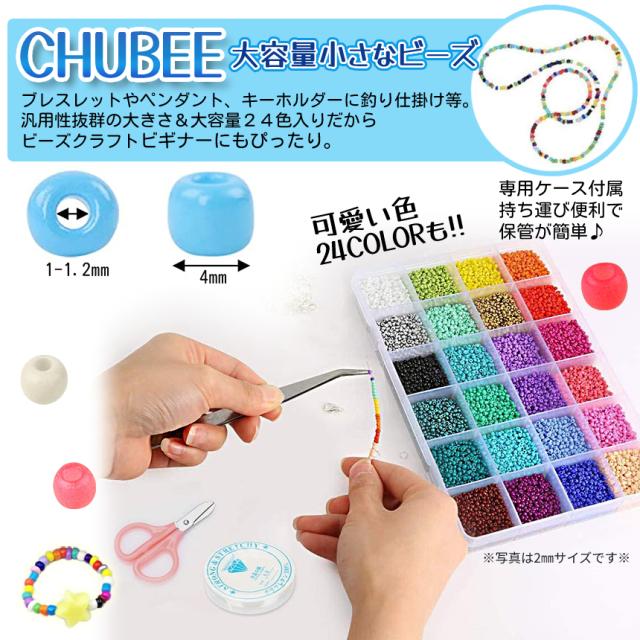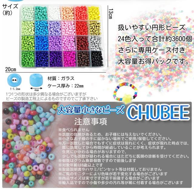 ビーズ アクセサリー 手作り キット 大容量 セット 約3600個 24色 円形 直径 4mm 穴径 1.2mm ガラス製 ケース 付き ブレスレット ネックレス キーホルダー 釣り具 パーツ クラフト DIY 手芸 ハンドメイド プレゼント CHUBEE 送料無料