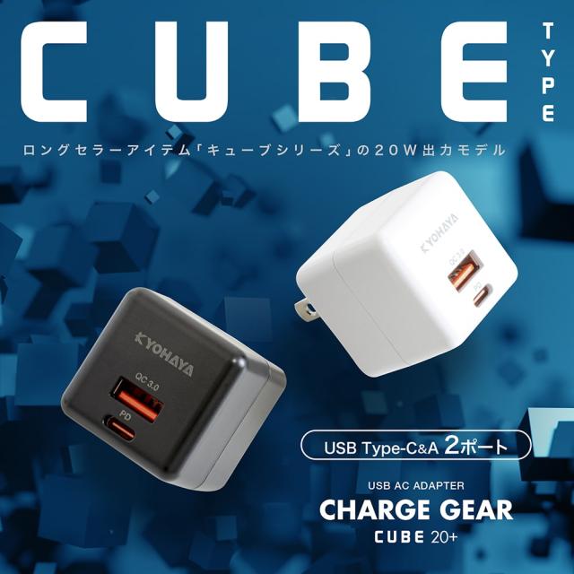 | ロングセラーアイテム「キューブシリーズ」の2ポート20W出力モデルのUSB充電器です。 |