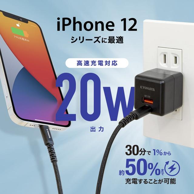 | アップル製品 iPhone 14 / 13 / 12 シリーズ等の高速充電とAndroid製品のQC急速充電のどちらにも対応したUSB充電器です。 |