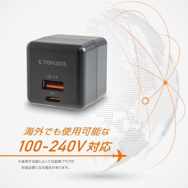 | 100-240Vの入力電圧に対応しており、海外旅行にも最適です。 ※使用する国によって別途変換プラグが必要になる場合があります。 |
