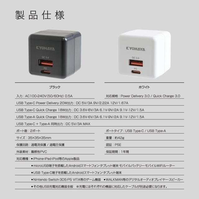 USB充電器 タイプC 急速 PD対応 QC対応 20W 急速充電 USB ACアダプタ USB-A USB-C 2ポート キューブタイプ JKPD20S2