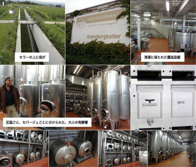 181.9ヘクタールという広大なブドウ畑をラインガウの各地に所有し、ハッテンハイム村の銘醸畑であるシュタインベルガーは、32ヘクタールのすべてを州営醸造所が管理しています。そのほかにも、ラウエンターラー・バイケン、ホッホハイマー・ドムデヒャナイ、エアバッハー・マルコブルンなど、数々の銘醸畑を手がけています。州立であったかつては州政府からワイナリーの運営に指示がありましたが、9年前に完全に独立してからは、“品質”を追求した自由なワインつくりが出来るようになり、品質が格段にアップしました。(30年前は量を求めた為、同じ畑から倍の生産量があった)2010年には世界最先端の設備を備えたドイツで最も近代的かつ機能的なセラーを建設。ここでは特に果汁の質にこだわり、クリーンな果汁を搾るために圧搾は極めてソフトプレス。(リンゴを絞る力が300としたら、圧搾には1.2という僅かな力のみ)