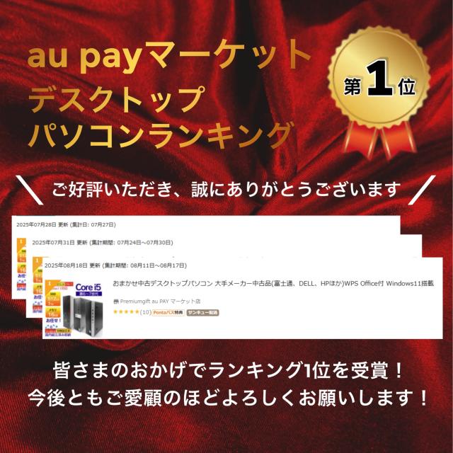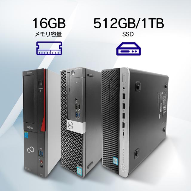 中古デスクトップパソコン おまかせ 大手メーカー 富士通 DELL HP ほか Windows11 Office付き 第6?7世代 Intel CPU Core i5 4コア 最大3.7GHz メモリ16GB SSD512GB 最大1TB増設可 DVD 初期設定済み 高性能 中古PC