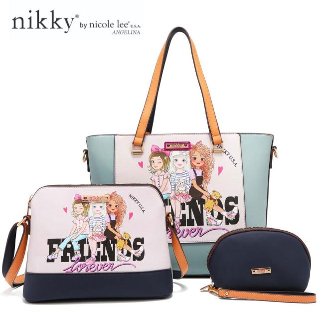 Nikky by nicole lee(ニッキー)NK12383 BEST FRIENDS レディース 3点セット トートバッグ+ショルダーバッグ+マルチポーチ ビーガンレザー 30代 40代 20代 春夏秋冬 SDGs サステナブル ブルーグレー ガールズ インスタ ピンク プレゼント ブラック