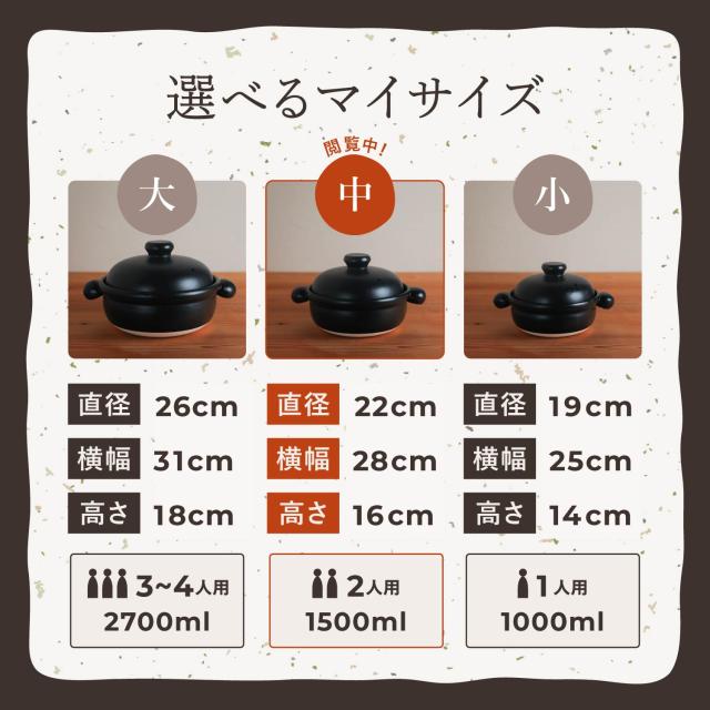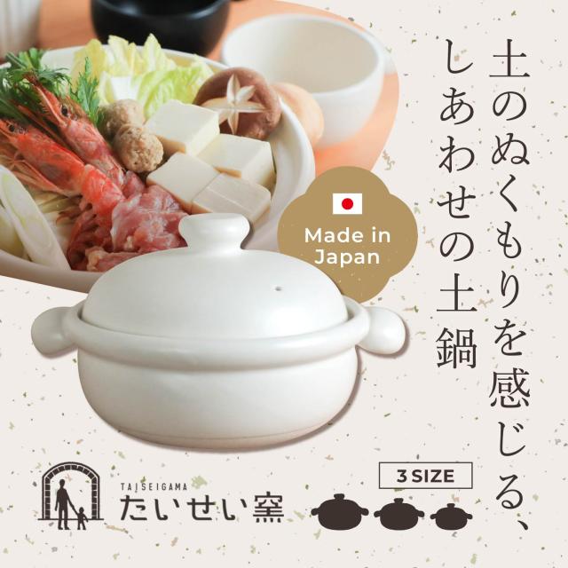 たいせい窯 土鍋 ばんこの土鍋 2人用 中サイズ 耐熱 日本製 BANKO EARTHENWARE POT ブラック ホワイト ベージュ