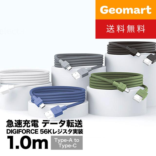デジフォース USB-A to Cケーブル 1.0m ゆうパケット送料無料 DIGIFORCE タイプC USB2.0規格 3A 急速充電 高速データ転送 56Kレジスタ実装 充電ケーブル ナイロン編込 Android
