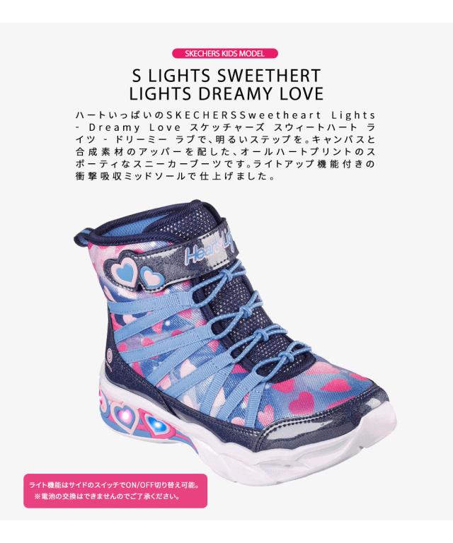 スケッチャーズ キッズ 光る スニーカー 女の子 おしゃれ ハイカット LED 子供靴 光る靴 マジックテープ ゴム紐 フラッシュ 小学生 ジュニア ガール ネイビーマルチ SKECHERS スウィートハートライツ ドリーミーラブ S LIGHTS SWEETHERT LIGHTS DREAMY LOVE 302667L