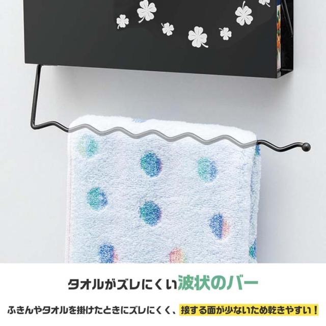 ●下部のバーにはタオルやふきんを掛けることができ、波状だからズレにくく乾きやすい!