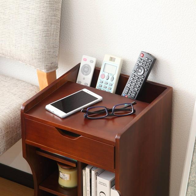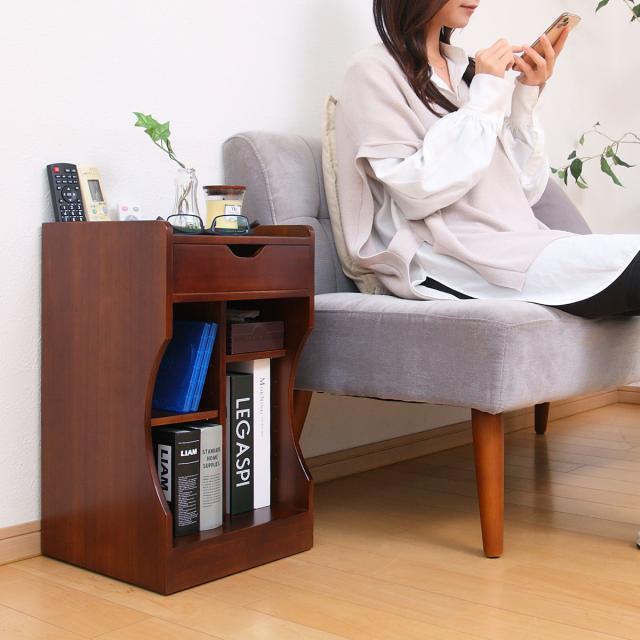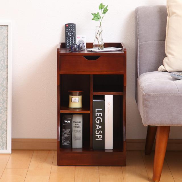 引出しにはよく使う小物を収納したり、縦スペースには雑誌などを収納して整理整頓ができ、必要な時にサッと取り出せるのでとても便利です。