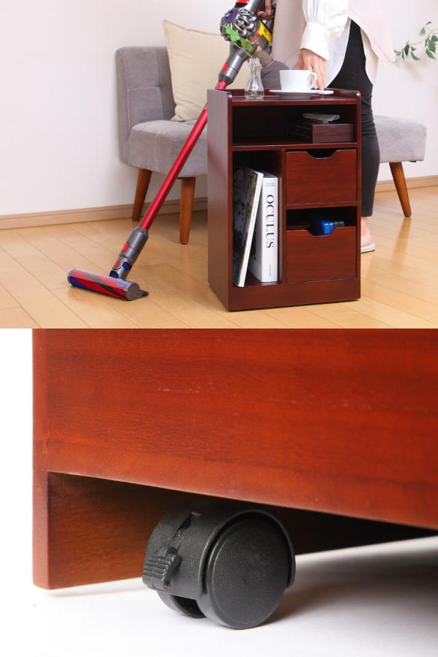 サイドテーブル 幅35cm 木製 テーブル下ワゴン 軽量 ( ワゴン キャスター おしゃれ 収納 ラック 引き出し サイドワゴン ウッドサイドワゴン キャスター付き デスクワゴン リビング デスクキャビネット 可動棚 北欧 )