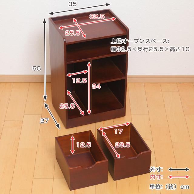 《 LH11506 サイドキャビネット サイドラック サイドチェスト ベッドサイドテーブル ソファ ベッド 横 デスク下 机 学習机 勉強机 家具 オフィス つくえ ワークデスク オフィスデスク パソコンデスク PCデスク 事務机 書斎 寝室 子供 子ども 部屋 会社 事務所 シンプル ナチュラル 茶 ブラウン 文房具 書類 小物収納 ソファ引出し 幅 35 奥行き 27 高さ 55 センチ 》