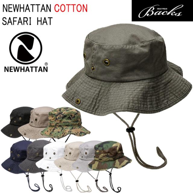 ツイルサファリハット メンズ レディース ニューハッタン NEWHATTAN サファリ アドベンチャーハット アウトドア 日差し UV キャンプ フェス バーベキュー BBQ ガーデニング 綿 コットン あご紐 紐付き 無地 シンプル nh1510