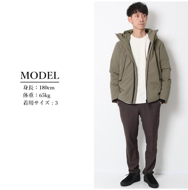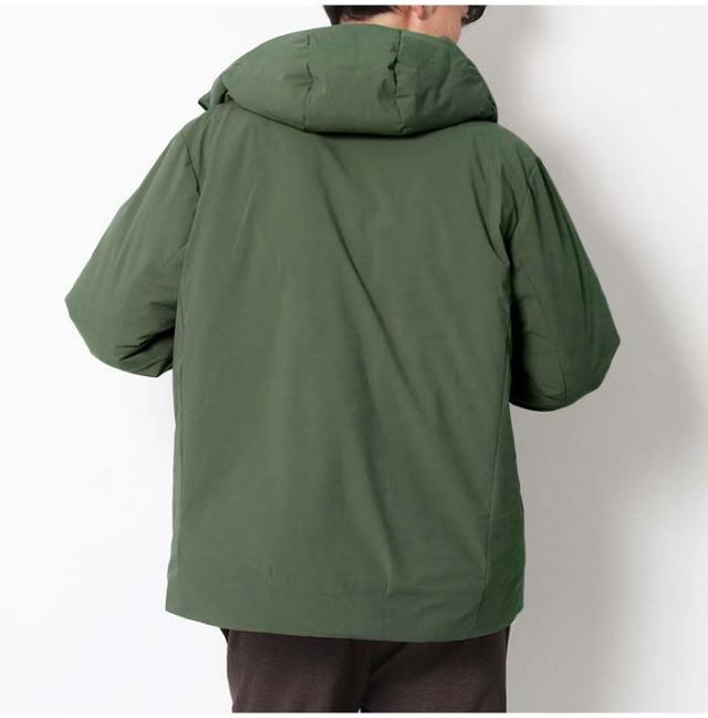 保温性の高いボリュームネックと表側のキルティングを無くすことですっきりとしたミニマルな印象のアイテムに。