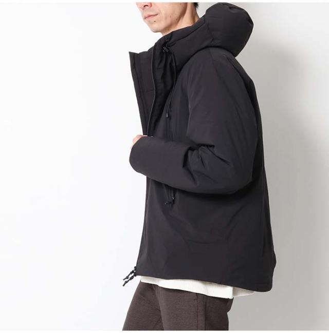フロントはダブルジップ仕様で袖口に配置したリブや、首元が隠れるまでファスナーを閉める事が出来るため保温性の維持も考慮されたディテールもポイントに。