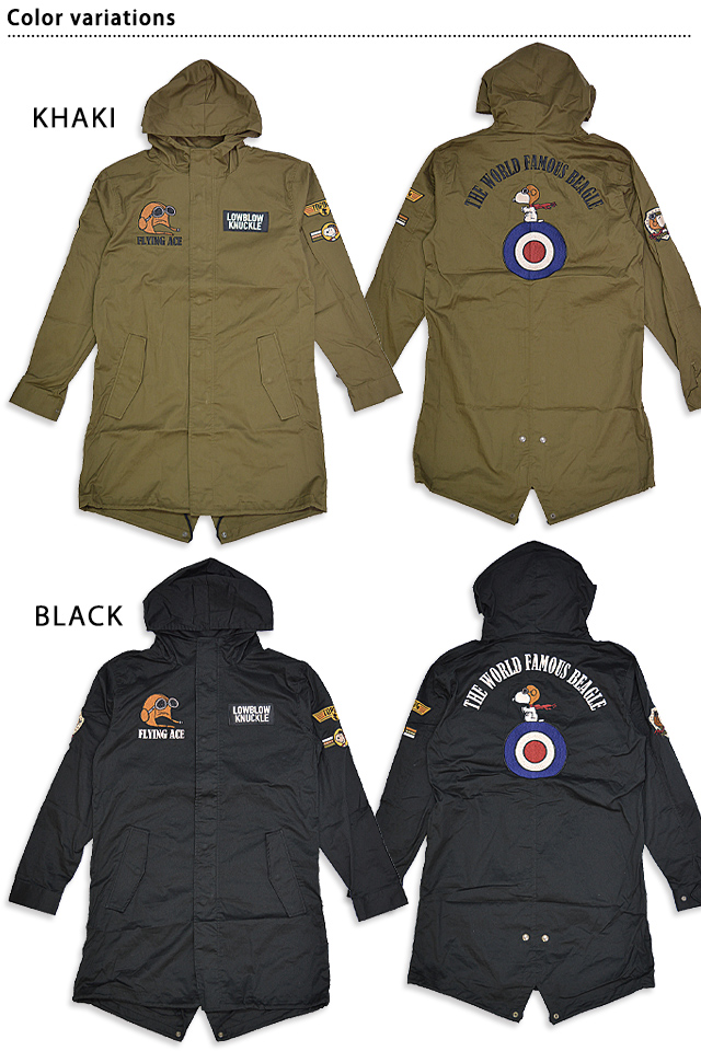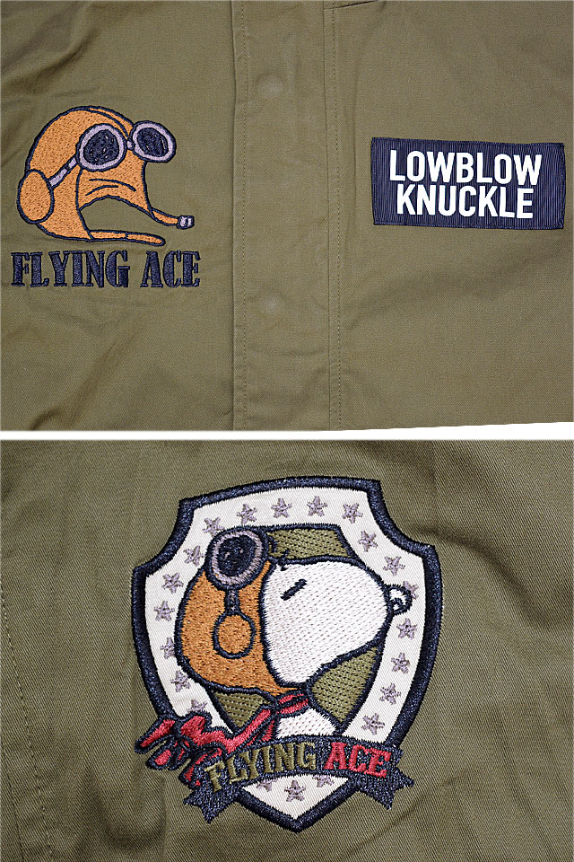 ロウブロウナックル×スヌーピー FLYING ACEモッズコート ロウブロウナックル 592401 ミリタリー 刺繍 ピーナッツ