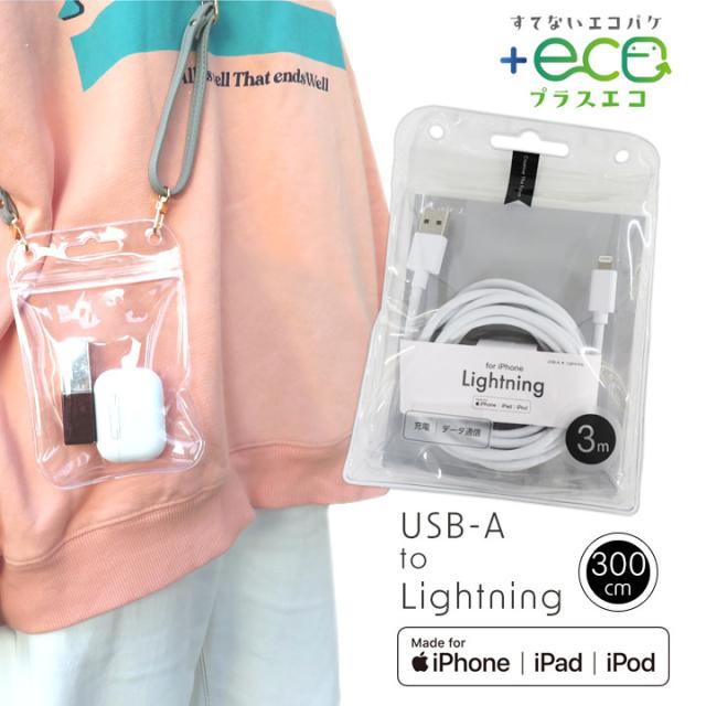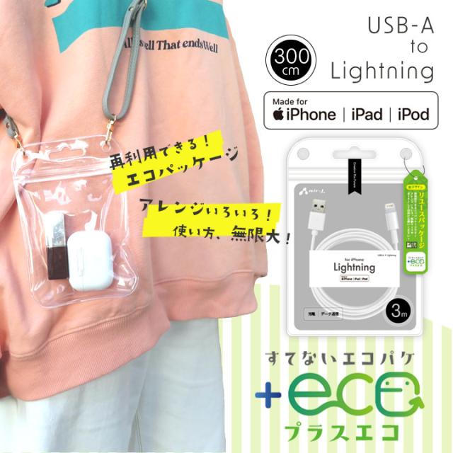 +ECO Lightningケーブル USB-A to Lightning 3m MFi認証 充電 データ通信 Lightning USBケーブル メール便送料無料