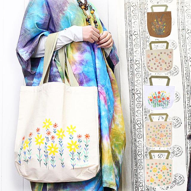 トートバッグ 大きめ レディース メンズ ユニセックス ヒッピーハンドペイント トートバッグ 【メール便OK】