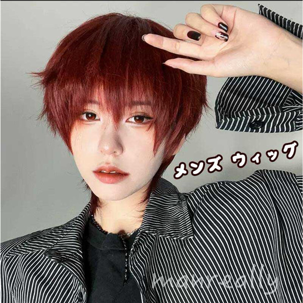 ウィッグ メンズ 短髪 かつら 自然 フルウィッグ コスプレ 男装 おしゃれ ナチュラル かっこいい 可愛い ショート 耐熱ウィッグ 赤 小顔効果抜群 コスチューム 文化祭 学園祭 イベント 自然 人気 韓国 ウィッグ dp156g4g4la