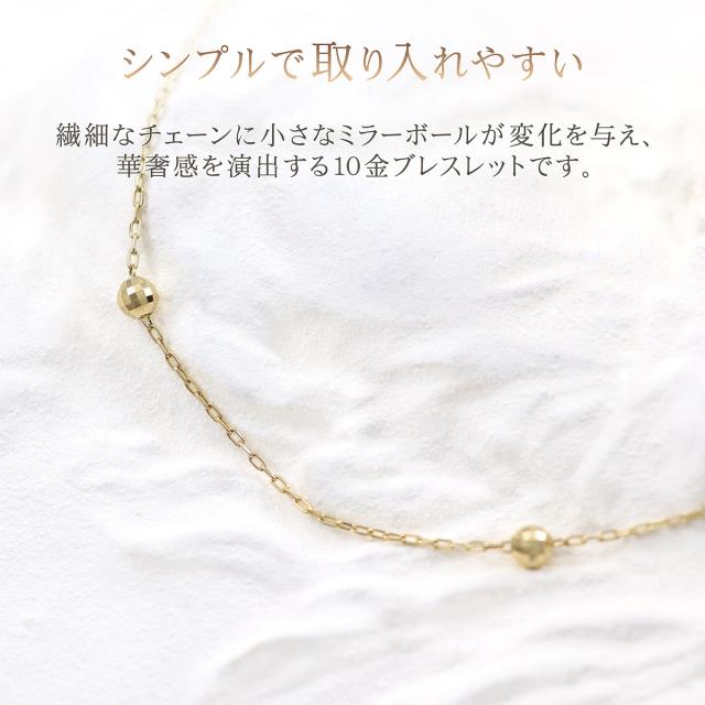 チェーンブレスレット レディース シンプル 10K イエローゴールド 地金のみ 華奢 ミラーボール キラキラ 10金 K10 ブレスレット チェーン 地金だけ プレゼント 誕生日 記念日 15cm 16cm 17cm 重ね付け おしゃれ 可愛い 贈り物 ギフト 女性 彼女 嫁 ホワイトデー お返し
