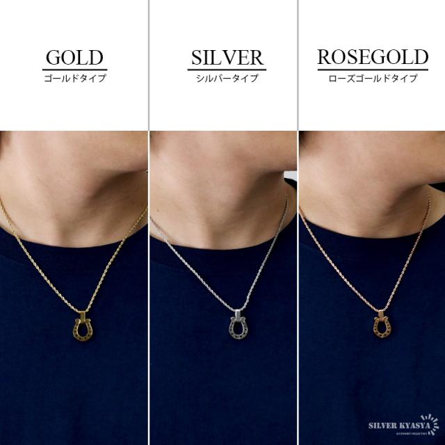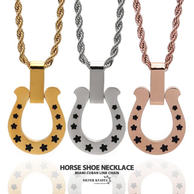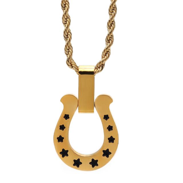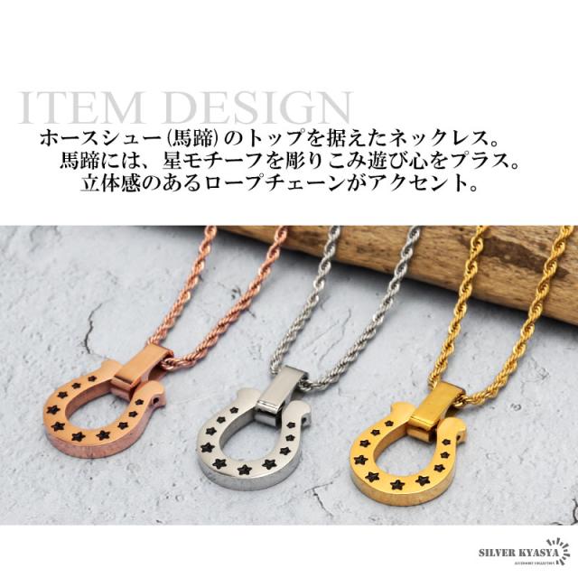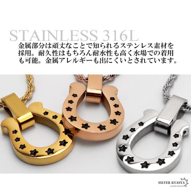 馬蹄ネックレス 316L サージカルステンレス ホースシュー 星 スター ロープチェーン 日常使い 普段使い IP ゴールド シルバー ローズゴールド メンズ レディース 金属アレルギー対応