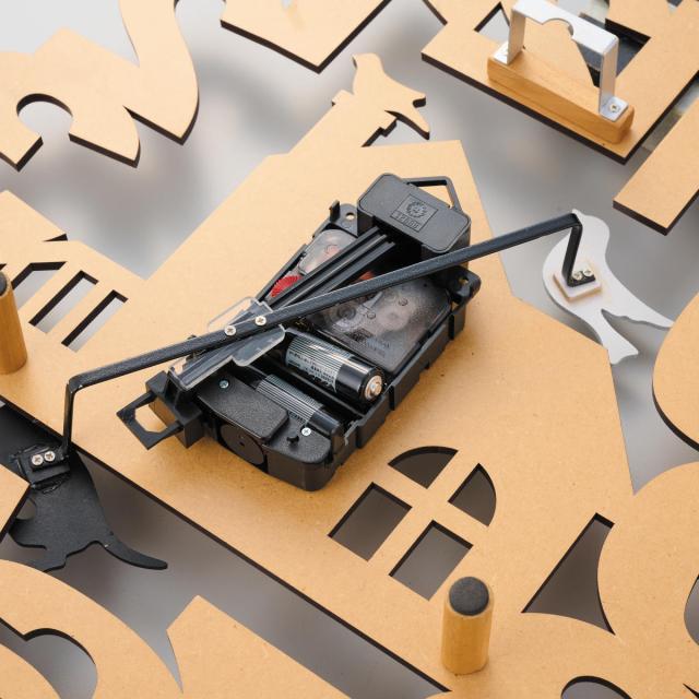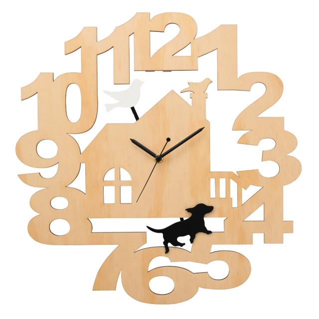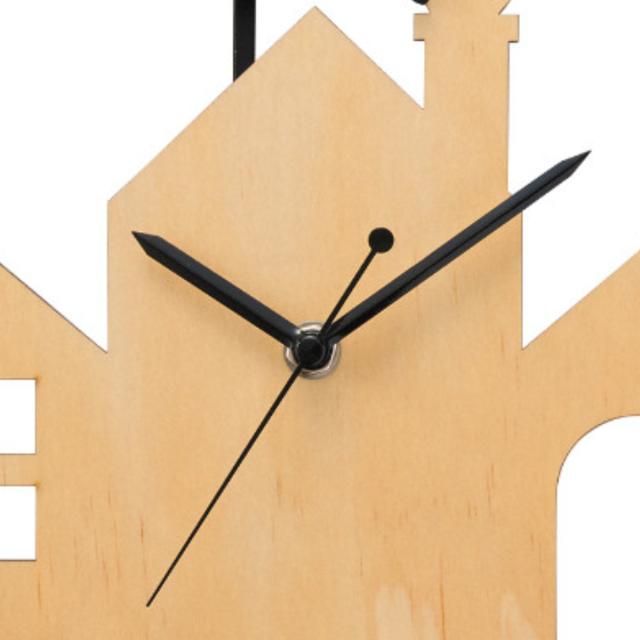抜き型の文字盤が特徴的で、かわいいながらもスタイリッシュな雰囲気です。インテリアに馴染みやすくさまざまなお部屋でお楽しみいただけます。