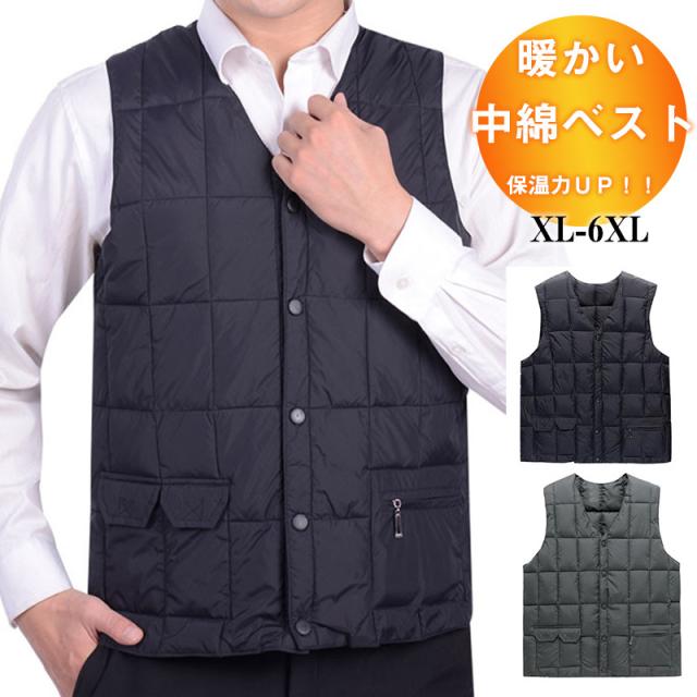 中綿ベスト メンズ ベスト アウター インナー ライナー キルティング Vネック 軽量 ゆったり 大きいサイズ 暖か 防寒 秋冬