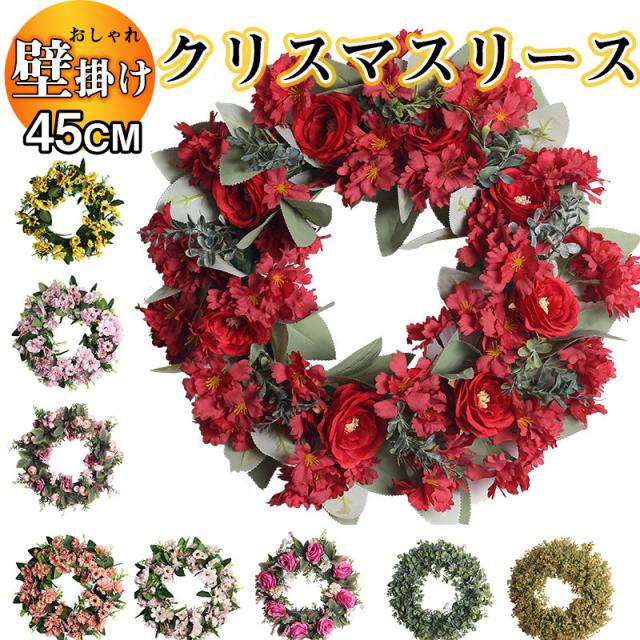 クリスマスリース インテリア 玄関 北欧 飾り フェイクフラワー 壁掛け 玄関 ドア 屋外 結婚式 お祝い 店舗装飾 庭園装飾 部
