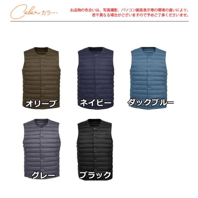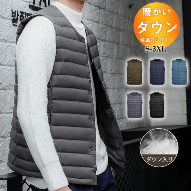 ダウンベスト メンズ ジャケット レディース ライトダウン ノーカラー 袖なし ジレ インナーダウン 羽毛 軽量 暖か 着痩 防風