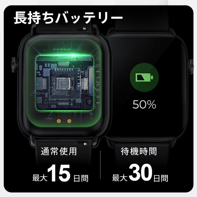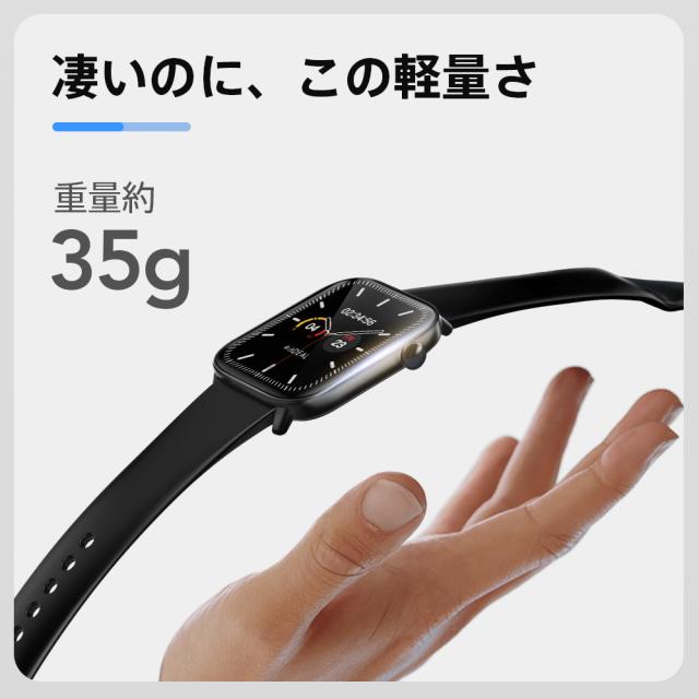 - 初めてのスマートウォッチです。とても軽くて良いです。スマホのアプリをダウンロードするので、時刻が正確で狂いません。バイタルチェックは参考になります。