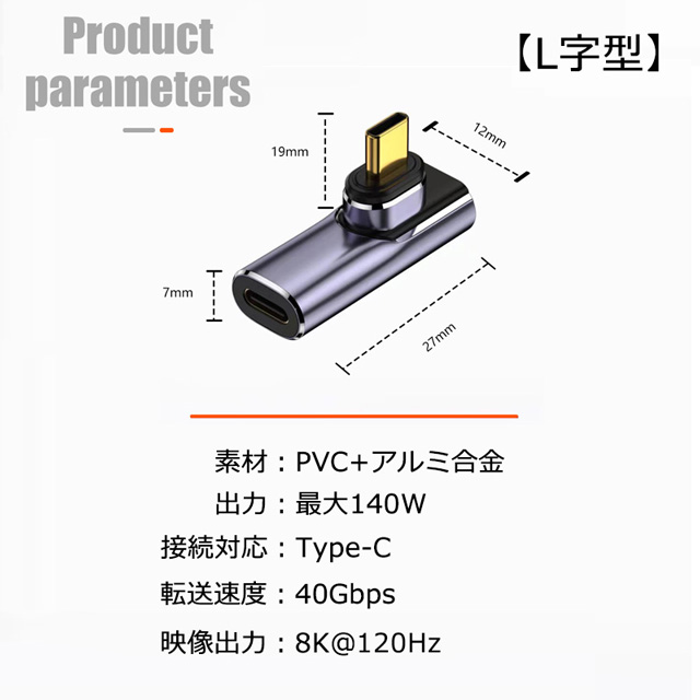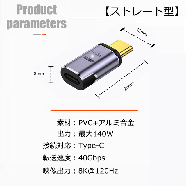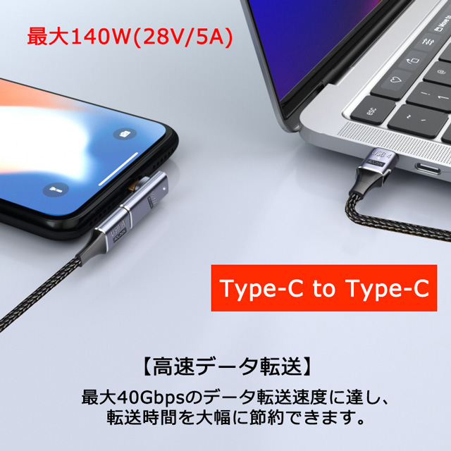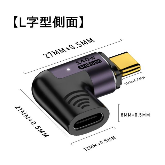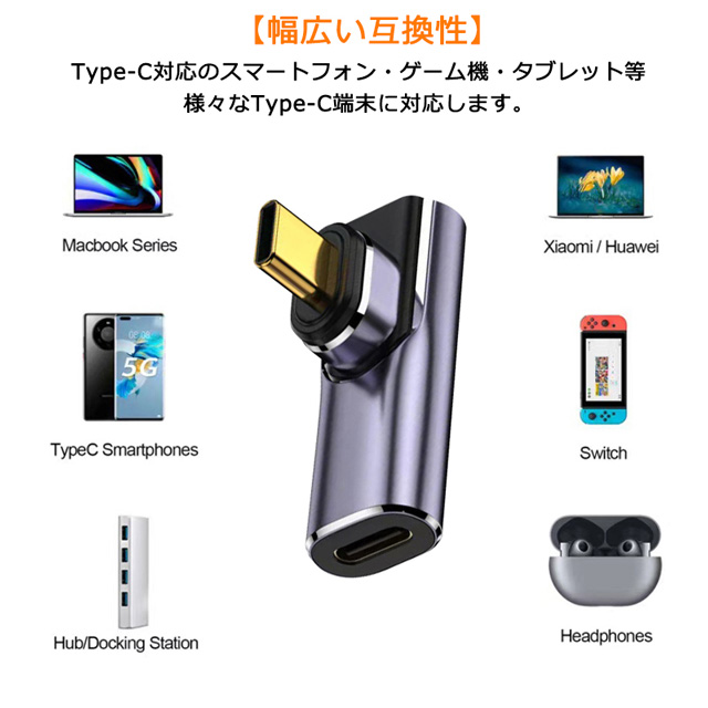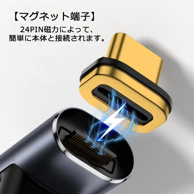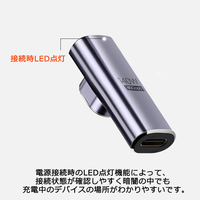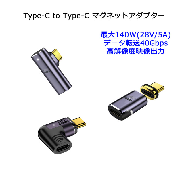 マグネットアダプター TypeC to TypeC 140W 5A コネクタ 40Gbps 高速データ転送 8K@120Hz 映像出力 USB4.0充電ケーブル用 TypeC 端子 マグネット タイプC アダプター 充電端子 ストレート型 L字型 マグネット端子 電源接続時LED点灯 Xperia Galaxyなど Type-C機器に対応