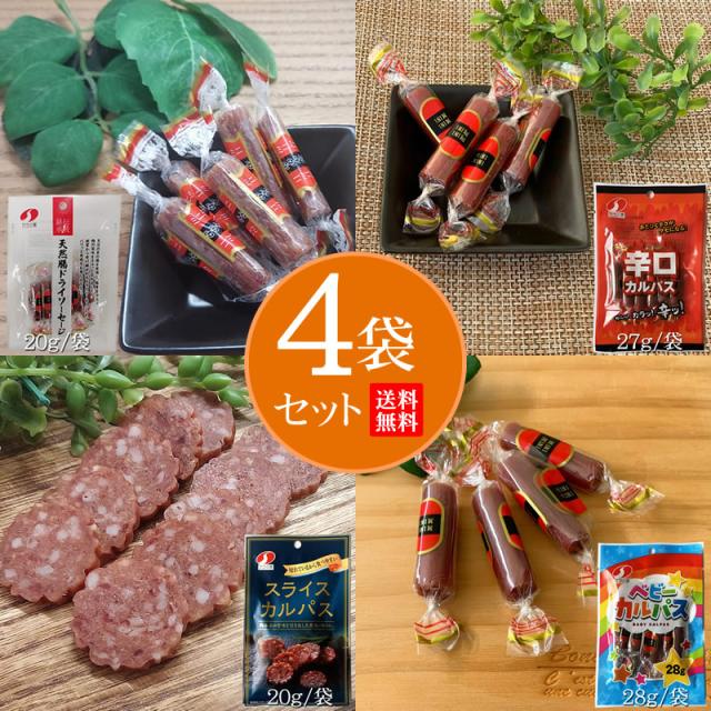 カルパス 食べ比べ 8袋セット バラエティセット メール便 送料無料 おやつ サラミ お菓子 お試し かなりお買い得 ポイント消化 おつまみ 食品 1000円 ポッキリ YP [サラミ家 4種8袋 BY3] 即送