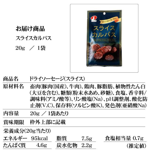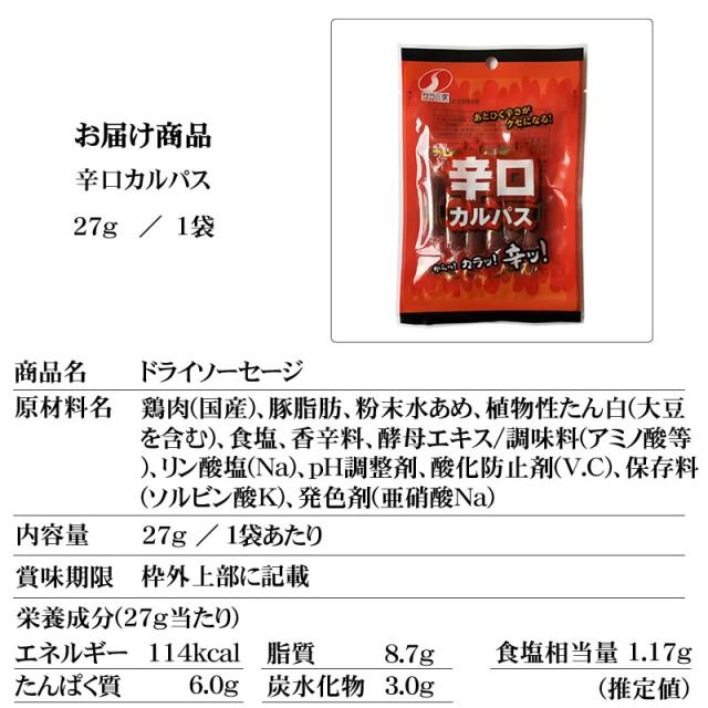 - 色々なカルパスが食べたくて購入しました 3日くらいで気がついたら届いてる感じです 少量なので次々に開けてしまい、すぐ食べきってしまいそうです…またポイント消化のときに買おうかなと思っています