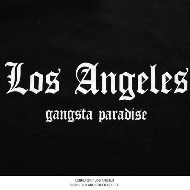 トップスは、LA(エルエー)の 略称で馴染み深い「Los Angeles」と共に、サグでハードな支配と抗争を繰り広げるストリートギャングの楽園を意味した「ギャングスタ・パラダイス/Gangsta Paradise」をドロップ。