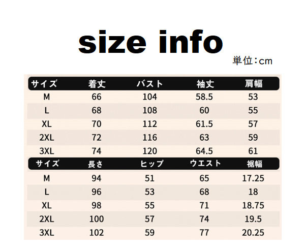※基本的に、XL・LL・2Lのサイズはすべて同じサイズです。