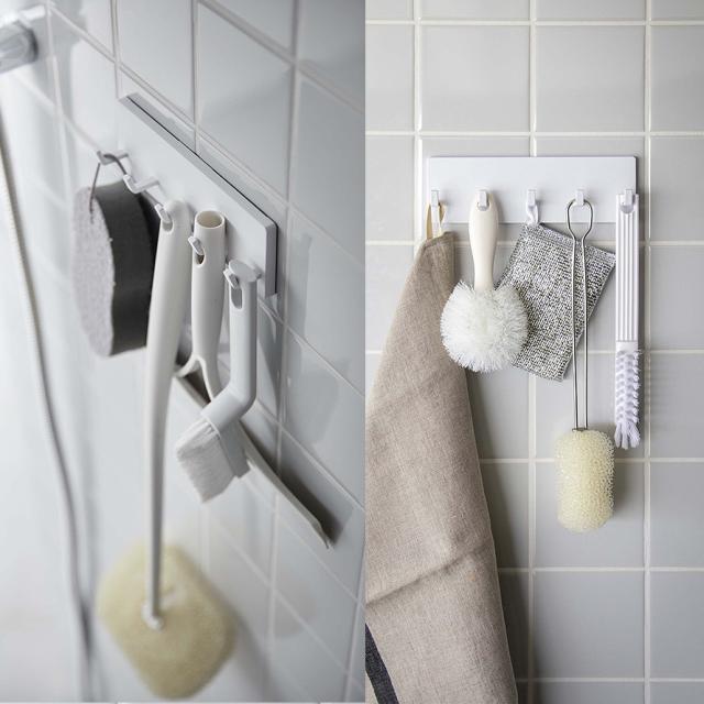 バスルームなどのタイルにも取り付け可能。掃除道具やケアグッズの収納に。