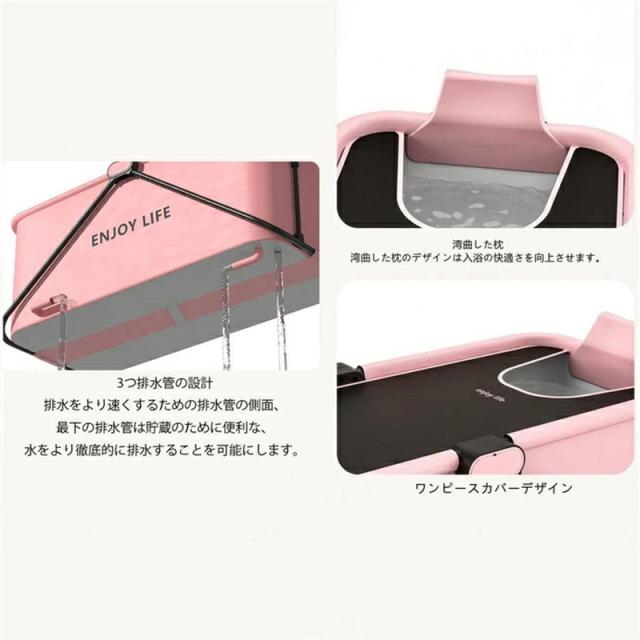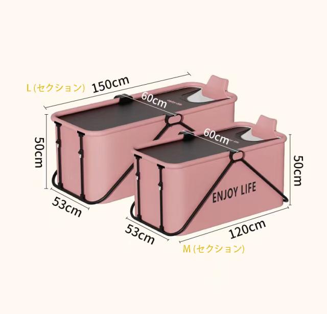 【用途】お手軽にバスタブをお楽しみいただけます。シャワールームで使えるコンパクトデザインで、浴槽がないお家でも使えます。夏は水風呂、冬はお湯に浸かる至福のバスタイムも可能です。 屋外での使用も車のトランクに簡単に収納でき、キャンプや旅行に最適です。