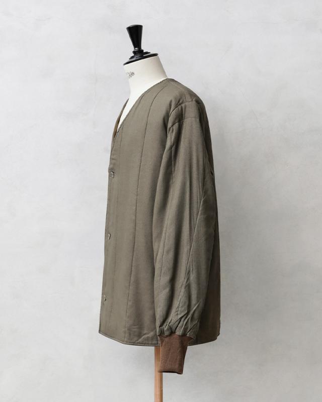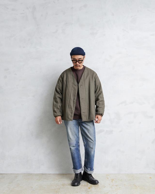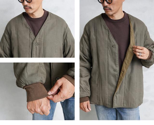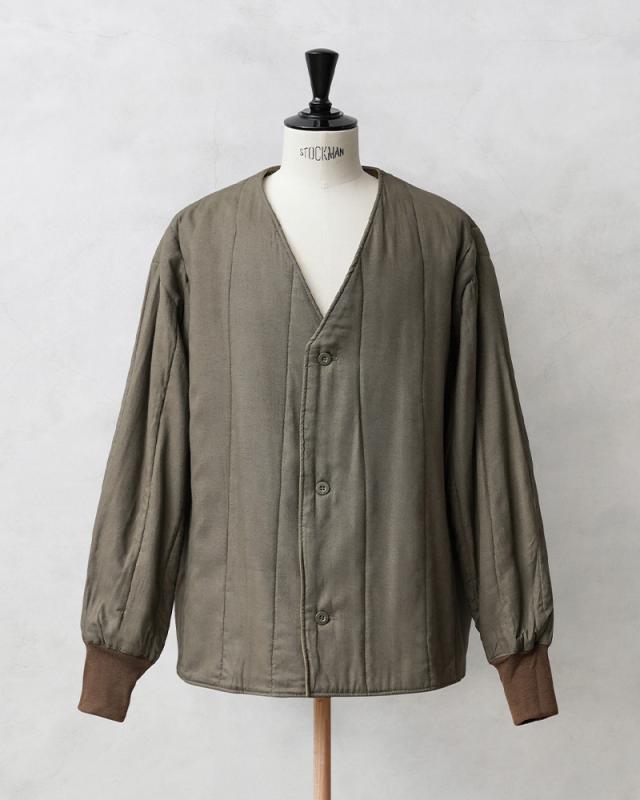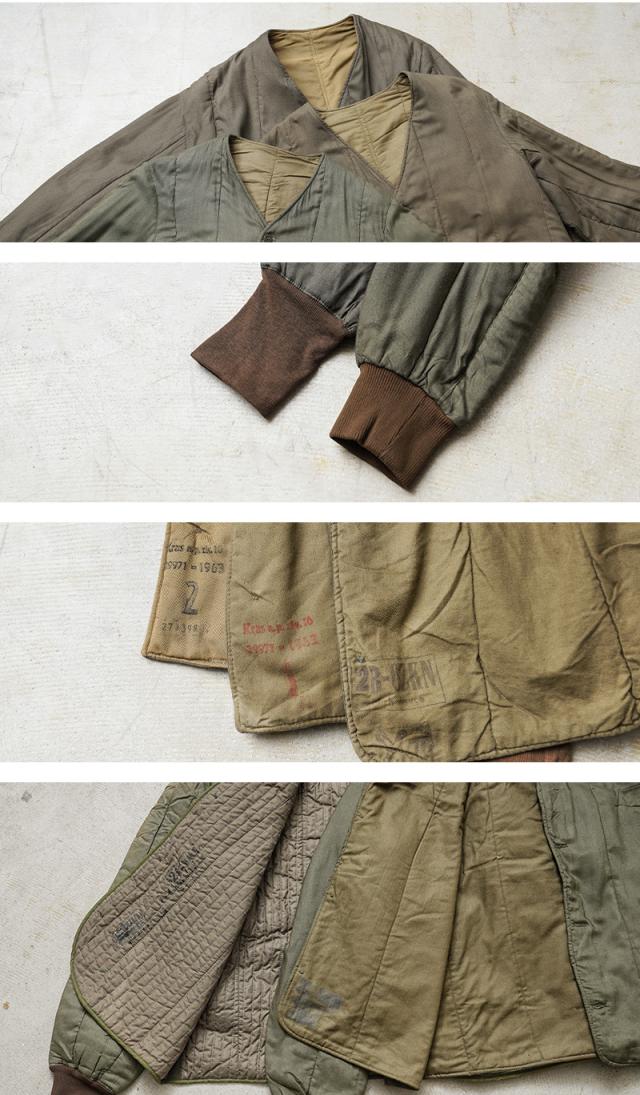実物 USED チェコ軍 M-60 Vネック ライナージャケットのご紹介です。チェコ軍より放出された、ライナージャケットが入荷しました。縦に入るステッチとすっきりとしたシルエットが特徴的なアイテム。本来はチェコ陸軍にて採用されていたM-60ジャケットのライナーとして生産されましたが、このように単体のジャケットとしてもご着用いただけます。