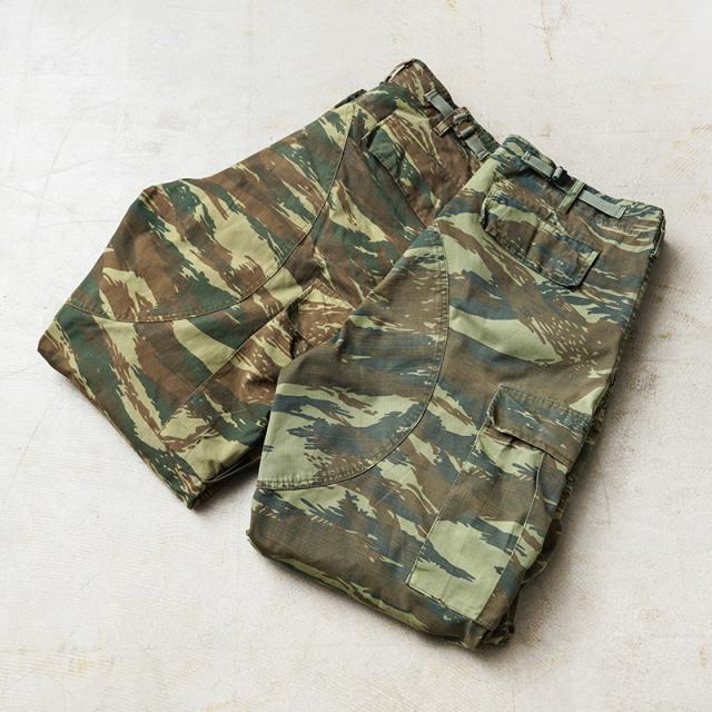 ギリシャ軍から放出されたリザードカモを使用したカーゴパンツが入荷しました。フランス軍のリザードカモを元に1970年代半ばにギリシャ軍に導入されたリザードカモに変化が加えられた「ギリシャリザード」とも呼ばれる派生型のカモ柄が使用されたカーゴパンツです。