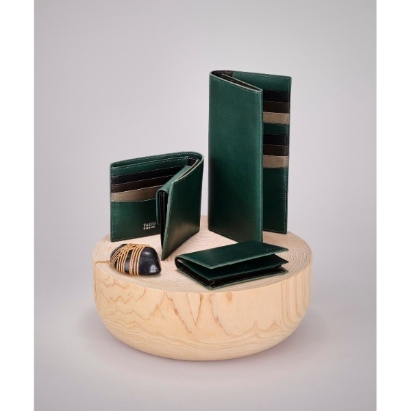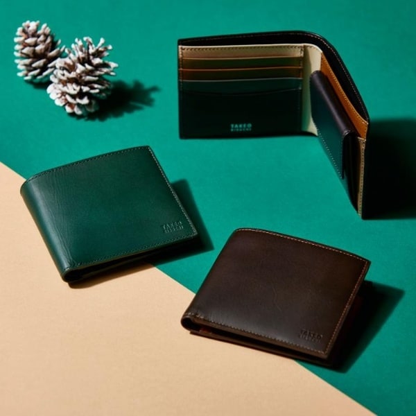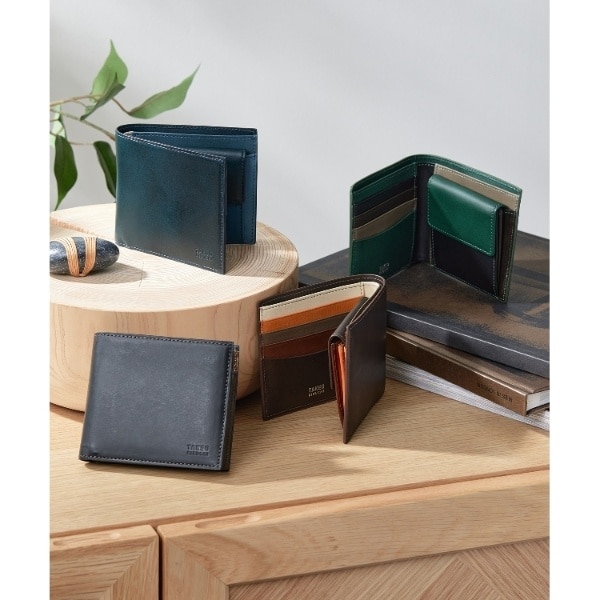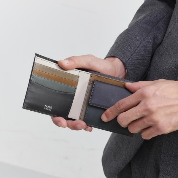 定番サイズの二つ折り財布タイプ。