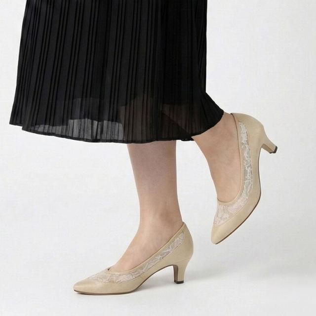 ≪価値観のあるレース≫と≪ポインテッドトゥ≫がポイントのパンプス。