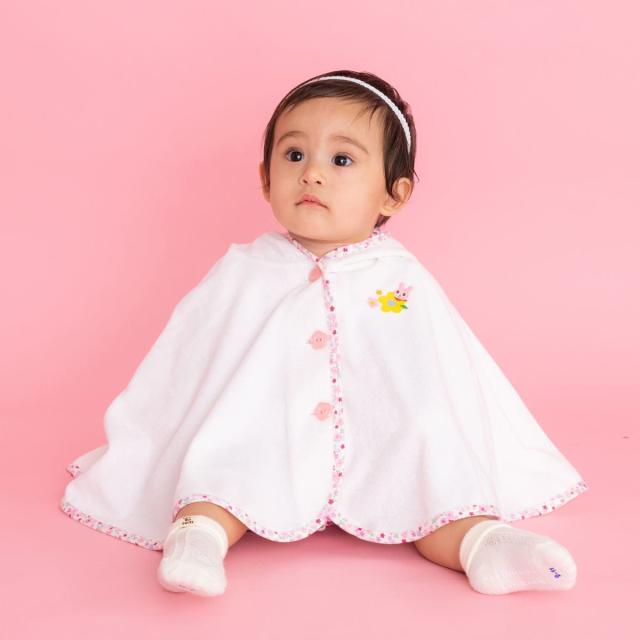 春から夏にかけてのベビーちゃん用のアウターとしておすすめのおでかけポンチョです。