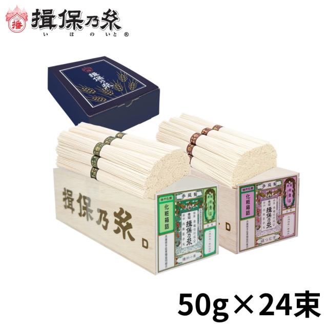 揖保乃糸 そうめん ギフト 播州小麦 縒つむぎ 国産小麦二種 手延素麺 各50g×12束 御祝い 御礼 お返し 内祝 御祝 お中元 五つ星ひょうご ひょうご推奨ブランド ミニ 木箱 /BM-40N/