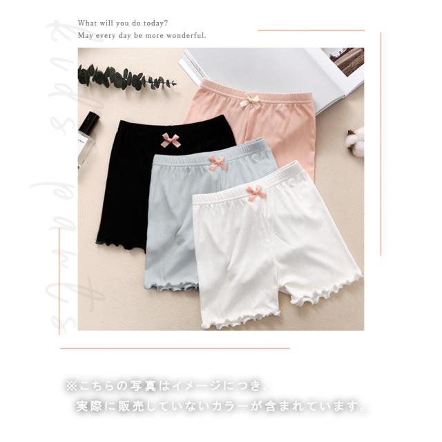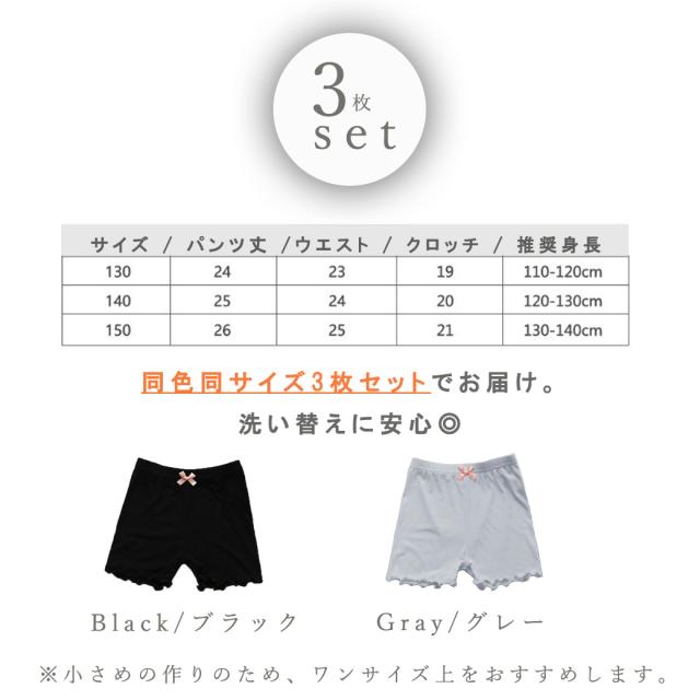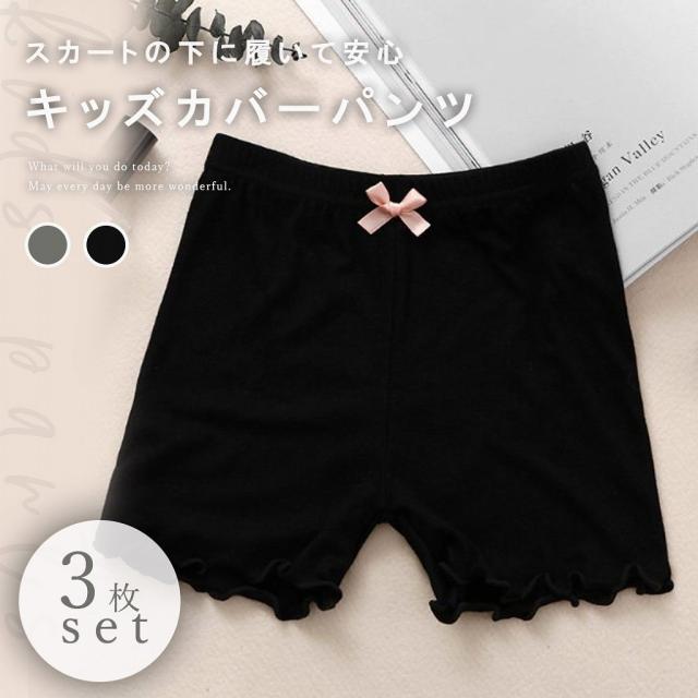 3枚セット カバーパンツ オーバーパンツ アンダーパンツ スパッツ 1分丈 レギンス グレー ブラック キッズ 子供用 女の子 リボン 伸縮性 通気性 かわいい agesugi_snk