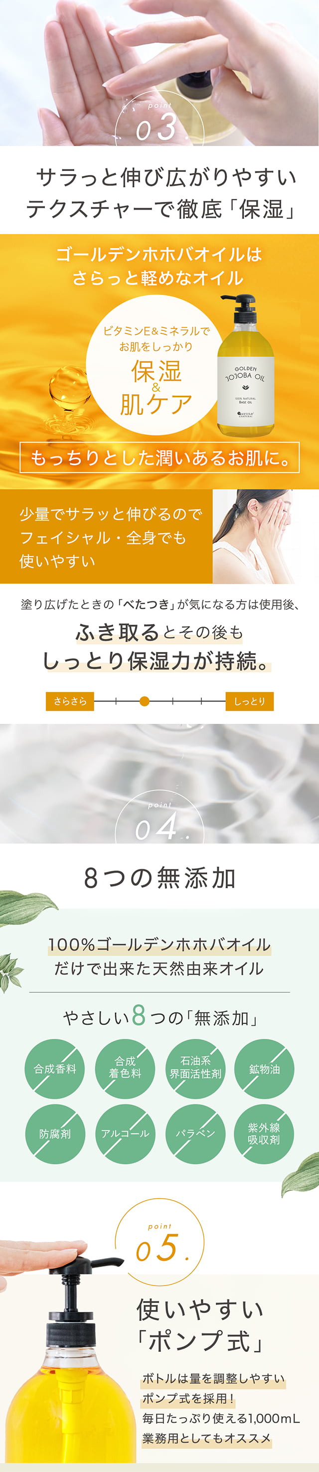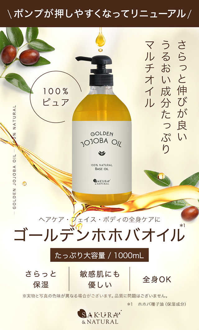 ゴールデンホホバオイル 1000ml 送料無料 オーガニック マッサージオイル 大容量 未精製 未精製ホホバ ボディオイル ボディーオイル マッサージ オイル 無添加 無香料 キャリアオイル 未精製ホホバオイル ポンプ付き sakura&natural マッサージ用