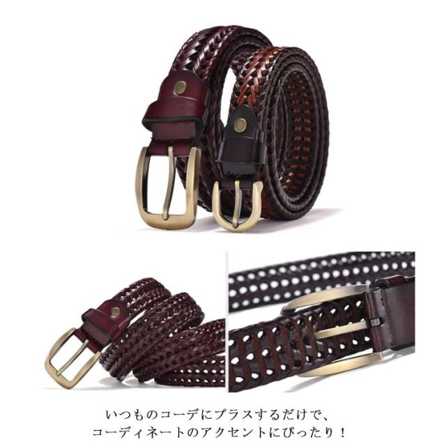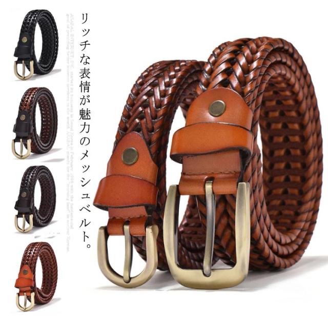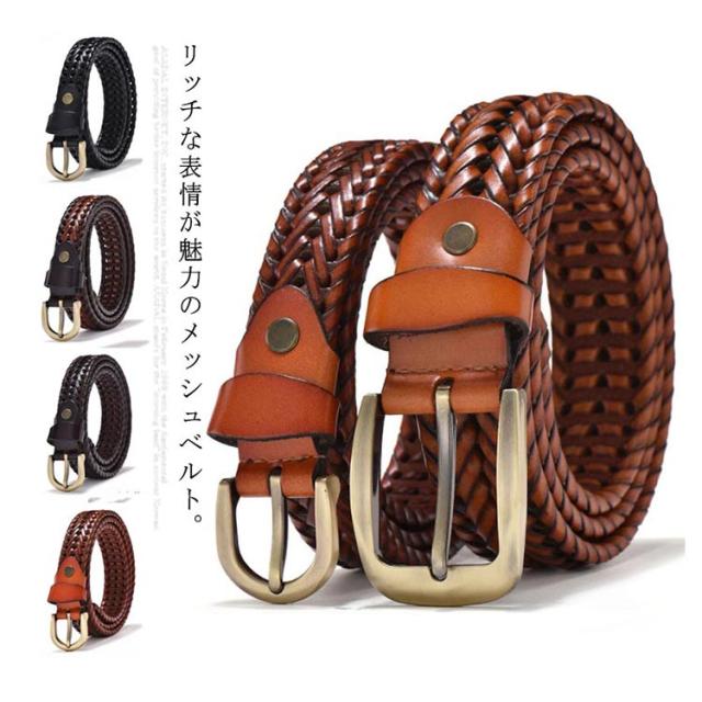 送料無料 メッシュベルト 本革 ベルト 編込み レディース メンズ 太ベルト 細ベルト レザー お洒落さ ウェストマーク 穴なし 無段階 ウェストベルト