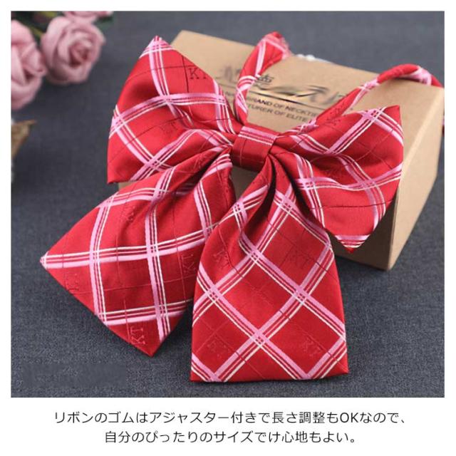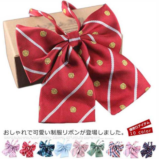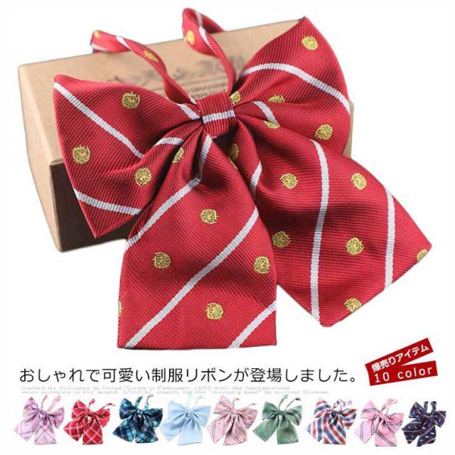 送料無料 制服リボン チェック柄 無地 制服 スクールリボン ワンタッチ ゴム アジャスター付き 女子高校生 卒業式 入学式 学生服 コスプレ ピンク グリーン レッド ネイビー 王冠