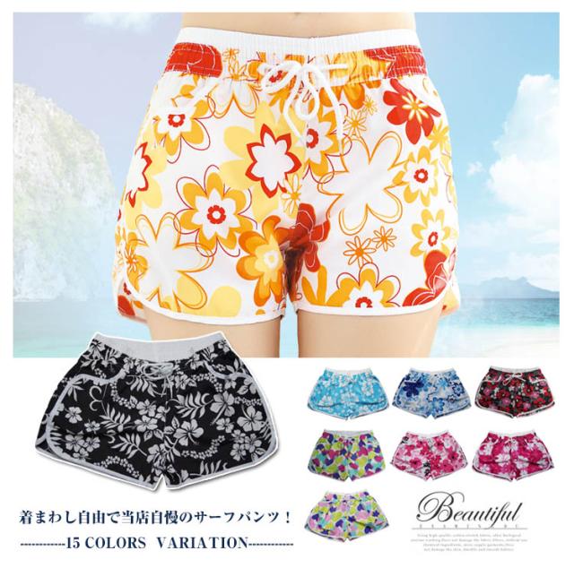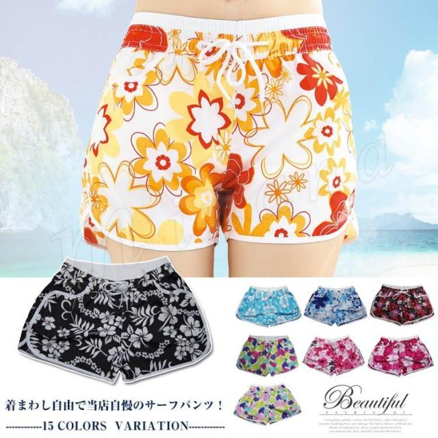 サイズ・色も豊富! サーフパンツ レディース ショート丈 水着 水陸両用 ショートパンツ 体型カバー 海水浴 スポーツ アウトドア ルームウエア 部屋着 夏 総柄 プリント カジュアル