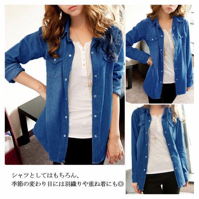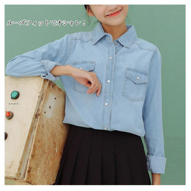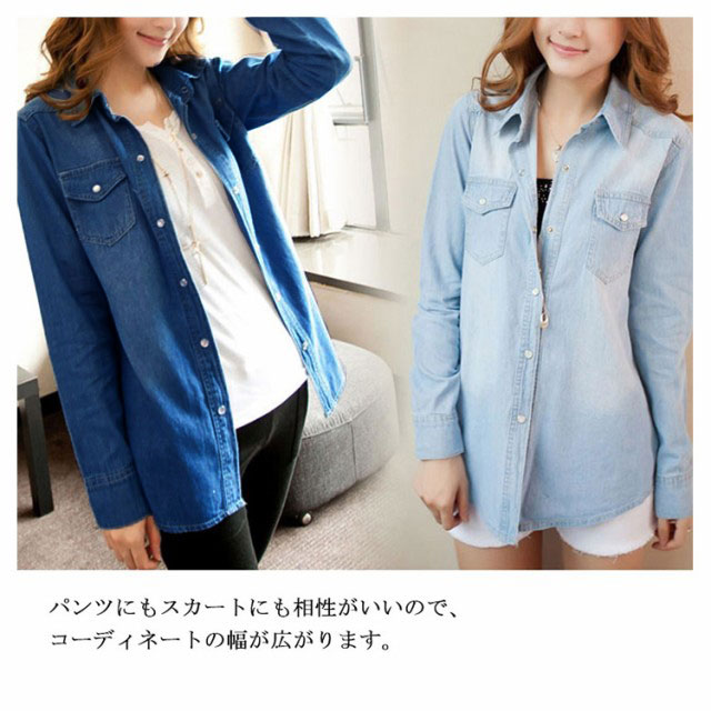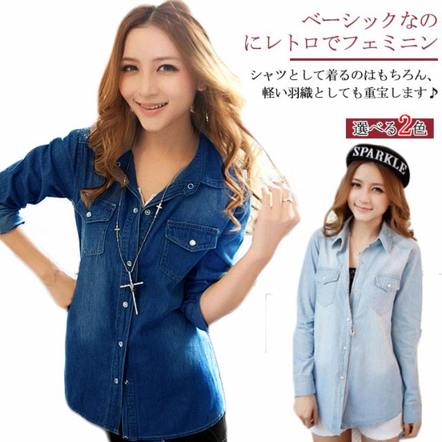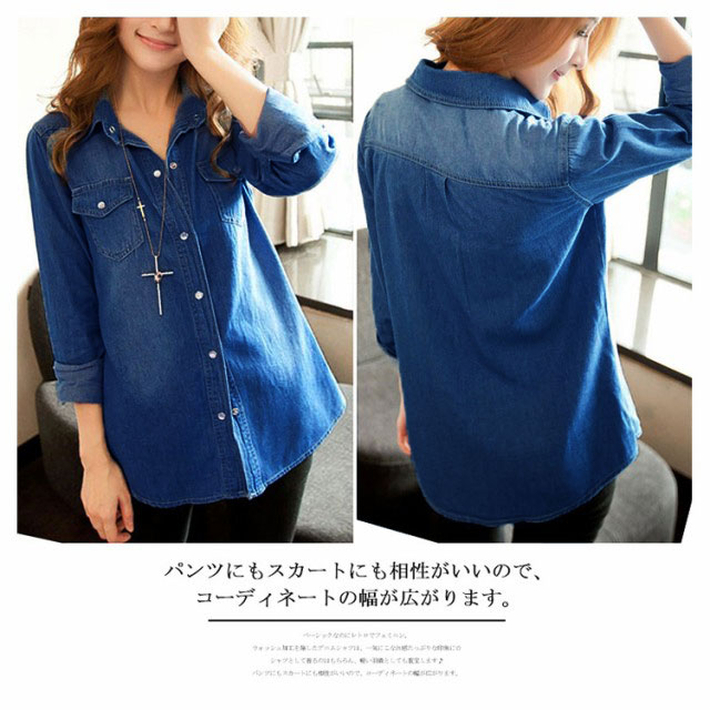 長袖 デニム シャツ デニムシャツ ビンテージ風